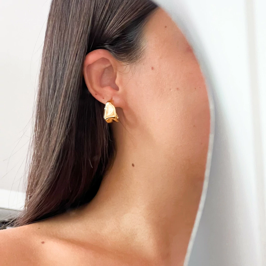 Banhado a ouro 18k, hipoalergênico e banho de verniz.